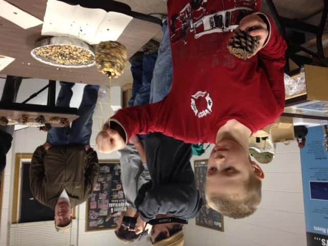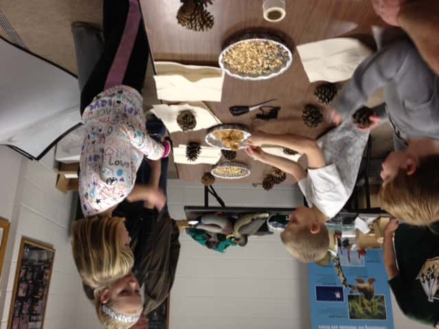 City, ND) Monday night marked another fun and educational experience for area youngsters during the Junior Naturalist Club meeting presented by six VCSU Fisheries & Wildlife students. The evening started with a multi media presentation, including photos and sounds of local birds that the attendants will be observing at the bird feeders they made this evening. The bird feeders we made using pine cones, peanut butter, bird seed and string.