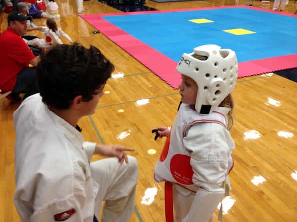(Other Pic: Older brother Cameron provides his little sister Uria some pointers in sparring)