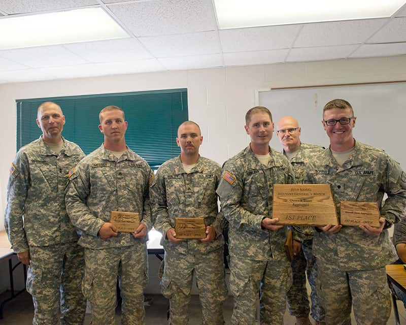 When the winners were announced during the final day of competition, four shooters from the Jamestown-based 817th Engineer Company (Sapper) again came out on top as the best overall team with the highest aggregate score from multiple shooting matches. The team members are Sgt. Evan Messer, of Mandan, North Dakota; Sgt. Jordan Gehlhar, of Lauderdale, Minnesota; Sgt. Andrew Maley, of Enderlin, North Dakota; and Spc. Drew Topp, of Jamestown. This is the 32nd year in a row the Jamestown unit has secured first place at the state match.