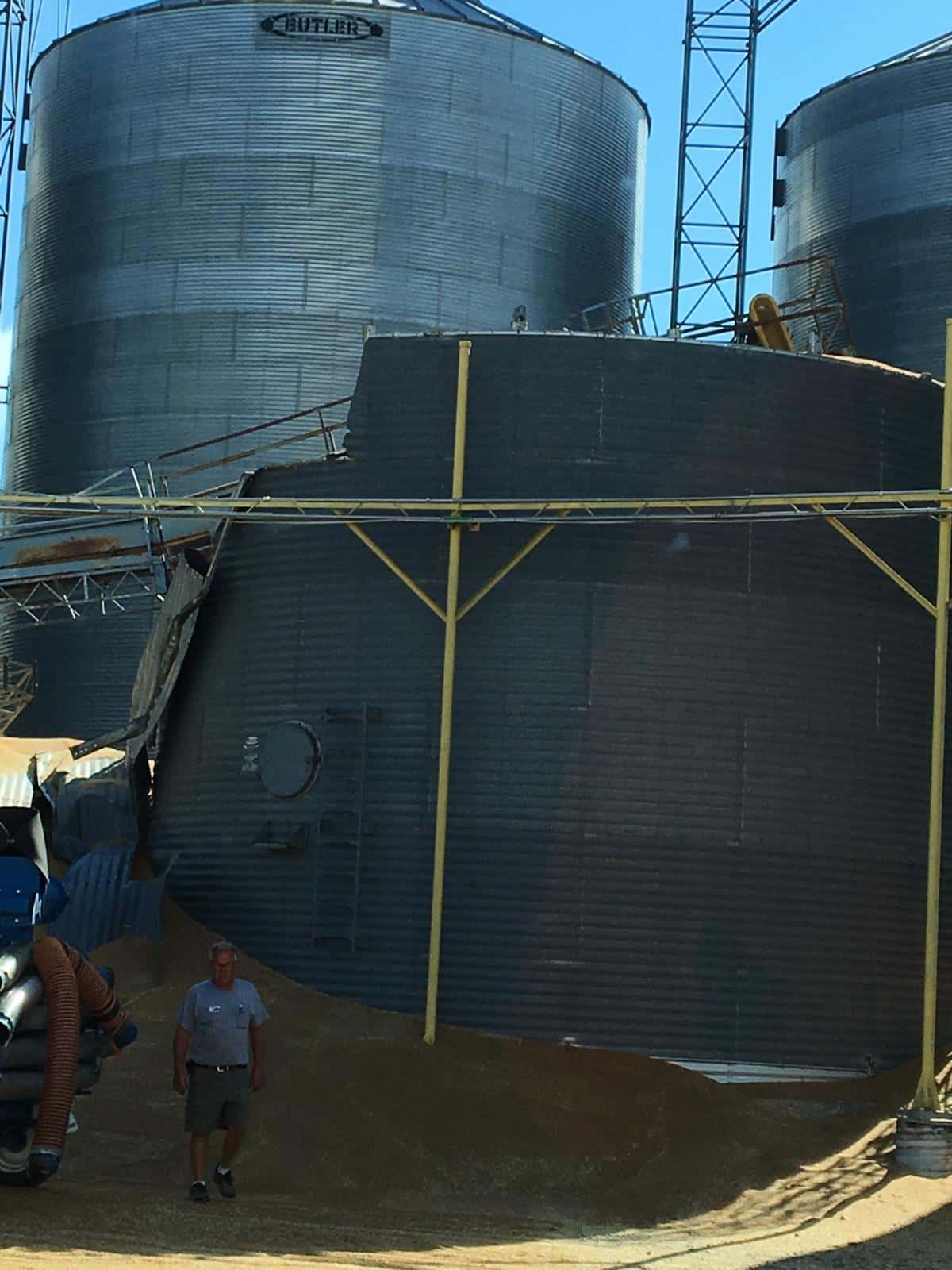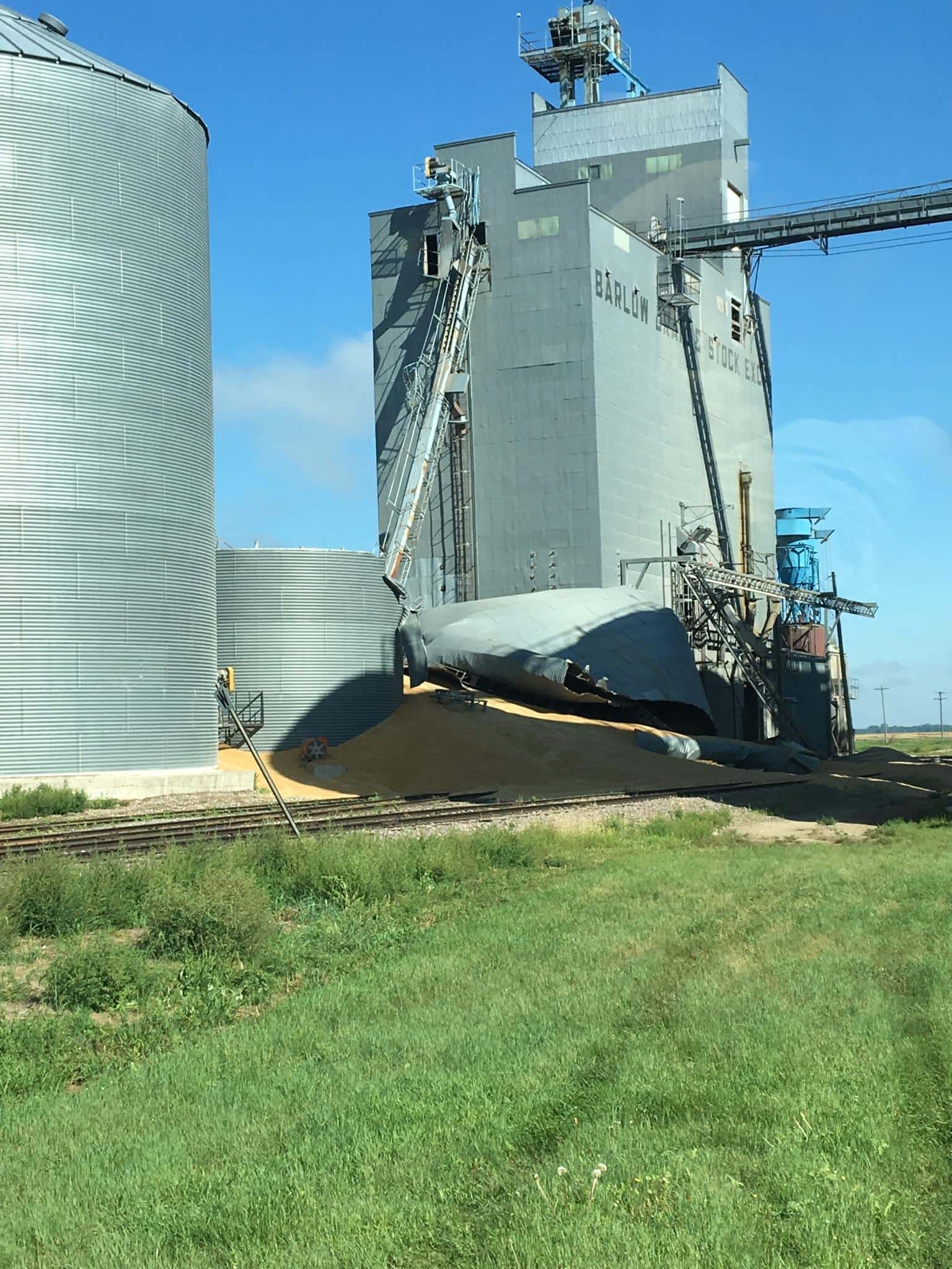 Barlow is located North of Carrington. Kyle Hewitt is a resident and former employee at the grain bin. He reports that at around 10:20 PM Monday evening, two 35,000 bushel grain bins collapsed. The bins are owned by Allied Grain Company.