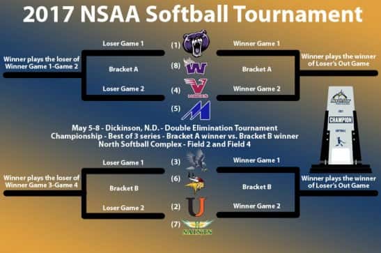S.D. – The brackets for the 2017 North Star Athletic Association Postseason Softball Tournament are set. Dickinson State, defending two-time North Star Softball Postseason Tournament Champions, will be this year’s conference tournament host site, with the opening round starting on Friday, May 5. Top eight seeds advance to the NSAA Softball Postseason Conference Tournament, which feature two brackets with four teams each—Bracket A and Bracket B—using a double-elimination within each bracket.
