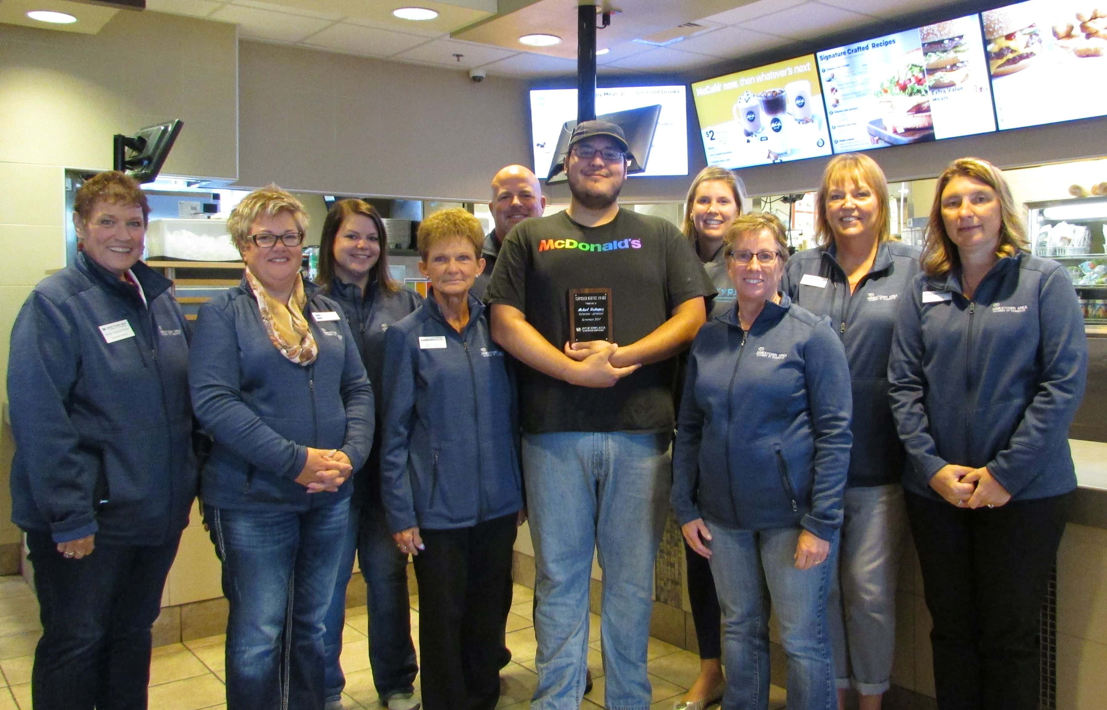 JAMESTOWN, N.D. (NewsDakota.com) – Members of the Jamestown Area Chamber of Commerce Ambassador Committee and the Young Professionals of Jamestown presented the September Customer Service Award to Mike Rodriguez, employed by McDonalds of Jamestown.