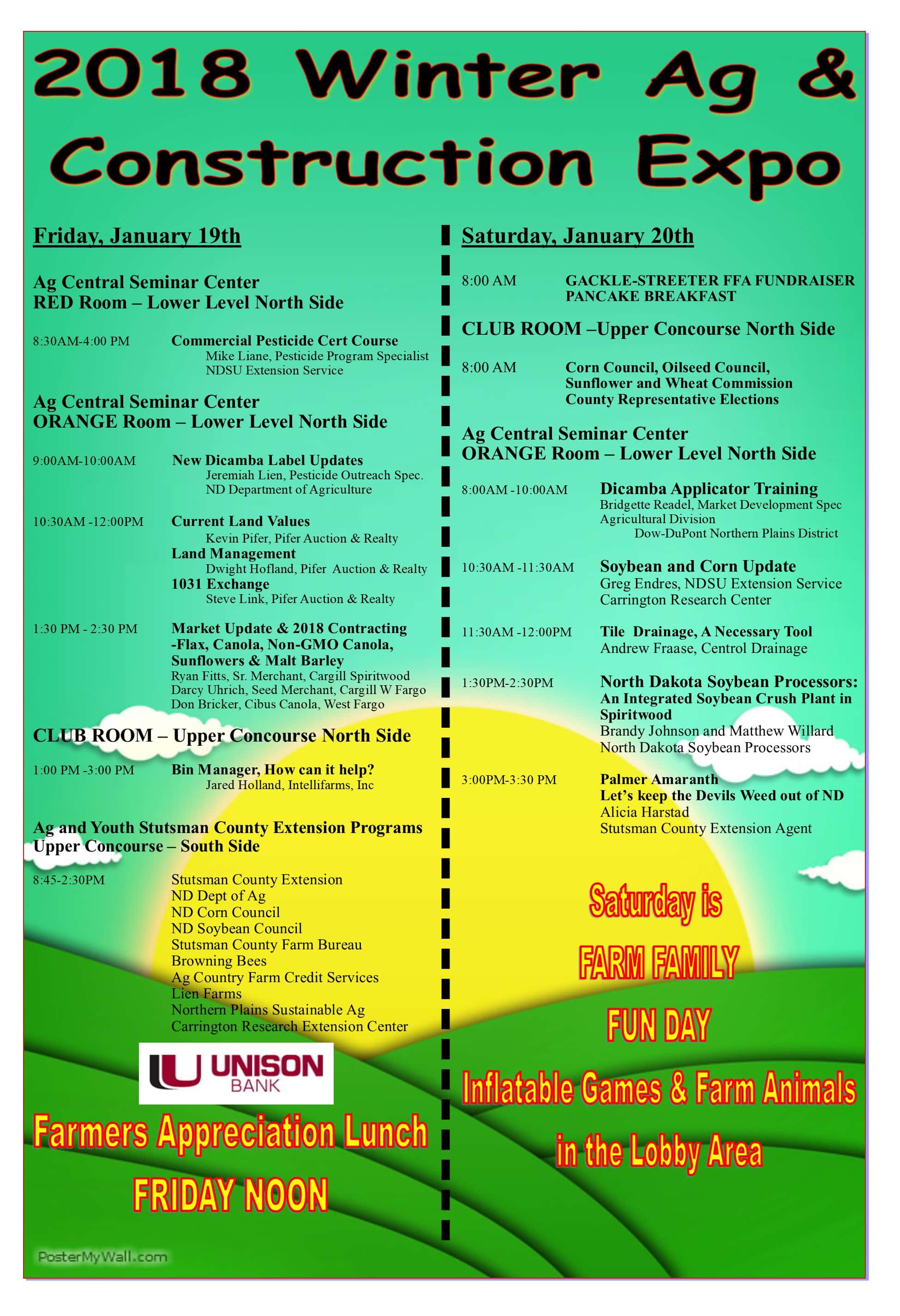 New this year is Farm Family Day, where families are asked to bring their kids along while they look at all the different booths and seminars. There will be inflatable games and farm animals in the lobby area to keep the children entertained.