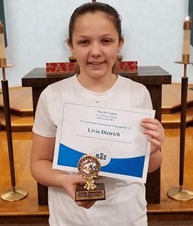 Livia Dietrich was the champion. She is a 6th grader and will be representing St. Catherine School February 6th at the Barnes County Spelling Bee to be held at Valley City State University.