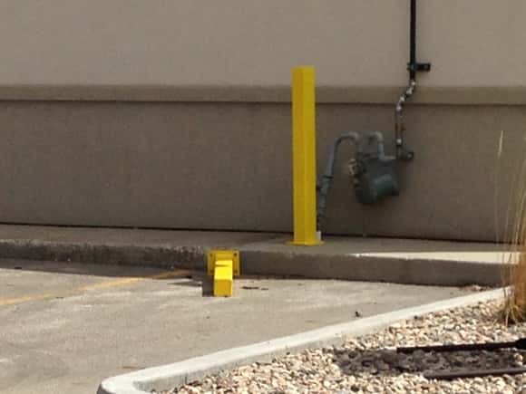 the gas meter on the Taco John’s building that was damaged in the accident.