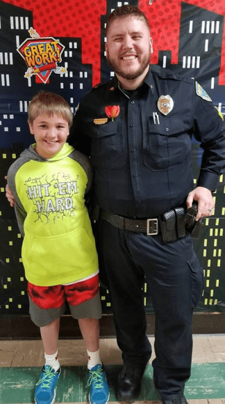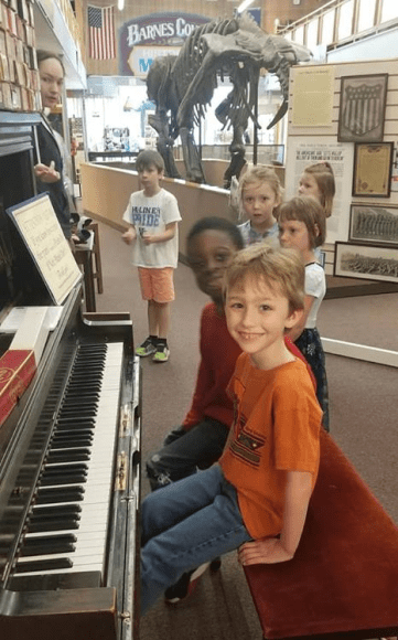 Ryer Muske had a special guest with him. Valley City Poice Officer Nick Horner came for breakfast, chapel, and mingling.St. Catherine School had 3 state winners for the AmVet Poster/Essay contest this year. The Theme of the contest was “What the Constitution means to me.” Above ; Emily Hoff -2nd grade; Cheska Flores -5th grade and Hadley Thoreson – 6th grade. God Bless America and our Veterans!St. Cathrine Students visit the Barnes County Museum.The Kindergarten class also took a field trip to the gymnastics facility in Valley City.