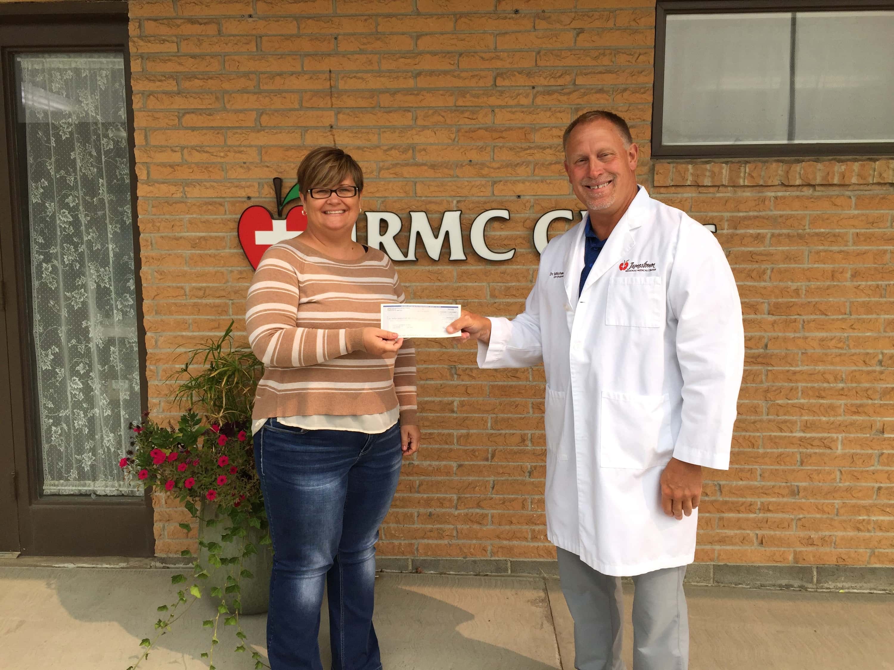 On Friday, Aug. 17, Dr. Michael T. Dean, JRMC Orthopedic Surgeon, delivered $888 to Anna Grenz who volunteers with Carrington Daily Bread.