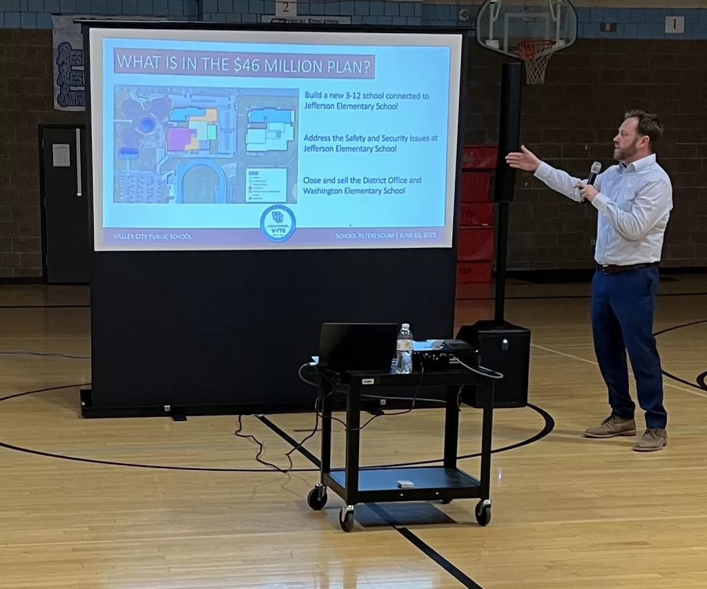 VALLEY CITY, N.D. (NewsDakota.com) – A presentation about the $46 million dollar school referendum was held Tuesday, April 22nd, if passed, it would allow the school district to build a new 3 through 12 school in Valley City. The new school would be connected to Jefferson elementary school.