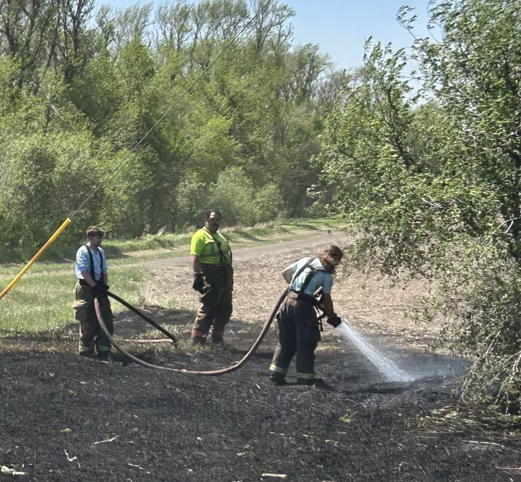 On Tuesday, May 13th crews battled a grass fire a few miles southeast of the King Schoolhouse after it ignited and a gusty southeast wind fueled the fire to burn several acres. No injuries reported in either of these incidents.
