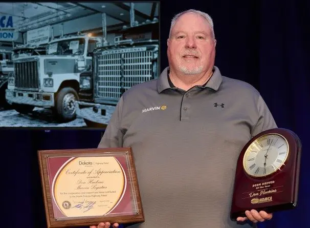 The NDHP presented Don Huckins, Hillsboro, with the 2024 Driver of the Year award. Don has been a commercial vehicle driver for the past 34 years. He has been a driver for Marvin Logistics, West Fargo, for the past 23 years. Don has logged over 3.8 million accident-free miles. He is a leader in safety, and an example of professional, safe conduct. In the nomination letter, Don’s leadership, safety-minded attitude, reliability and friendship were noted as follows, “Don’s leadership is a valuable resource for the logistics team both in Fargo and across our enterprise. He has consistently acted as a sounding board for logistics leadership as Marvin has worked to continuously update and strengthen its safety processes. His decades of experience on the road himself, coupled with countless hours spent training new drivers, give Don a unique perspective into some of our biggest opportunities to make safety protocols clear, effective, and attainable for all drivers.”