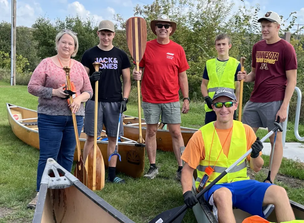 31 volunteers gathered from 1-4 pm either on the river or in the town area to pick up litter or trash of any sort, from a beaver trap to lawn chairs to a muffler and plastic bottles. People in 9 canoes and 3 kayaks scoured the river from the Fish Hatchery to the Bjornson Golf Course.