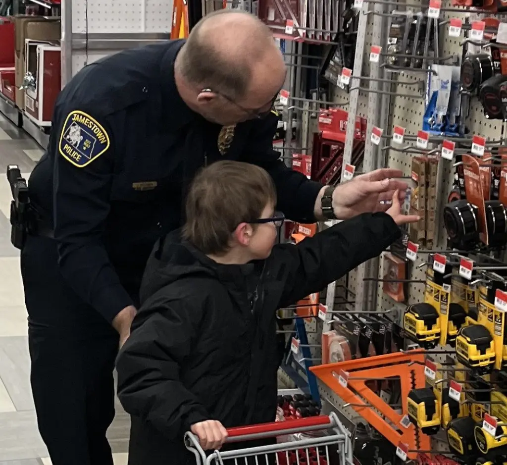 Valley City Police Lt. Dana Rustebakke said the fun event helps families who could be going through a hardship such as financial, a traumatic event or the loss of a loved one. The children and officers enjoyed a supper at Pizza Corner before heading down main to shop for gifts at Handy Home and Hardware.