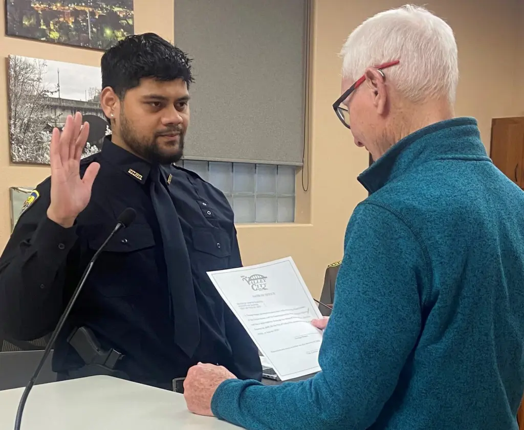 Officer Mageo was sworn in on January 6, 2026, by Valley City Mayor Dave Carlsrud as his family, fellow officers and city commissioners looked on.