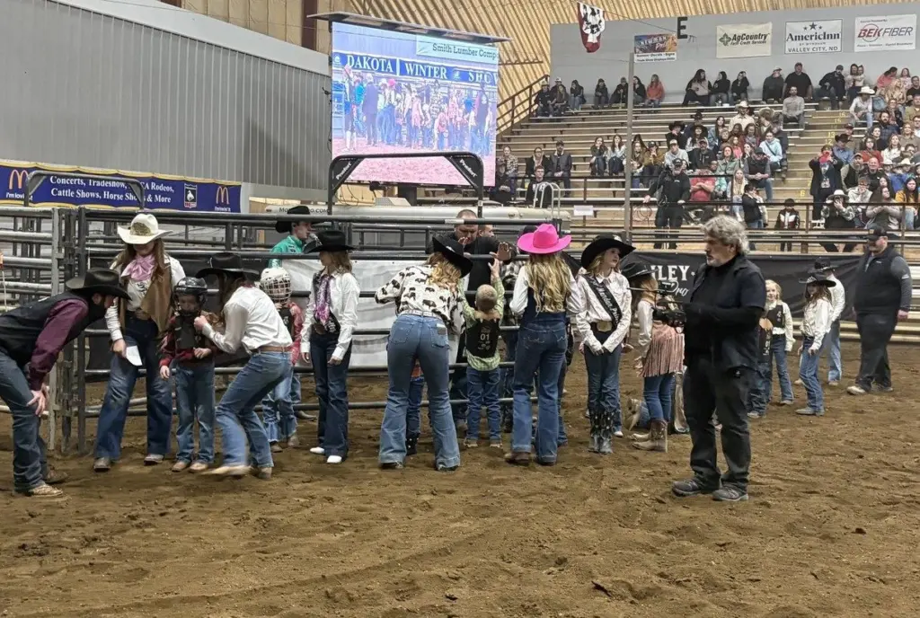 VALLEY CITY, N.D. (NewsDakota.com) – Tough on the mat and tough in the dirt some nine Express Wrestlers took to the dirt during the 7pm North Dakota Winter Show Rodeo for some Mutton Bustin.