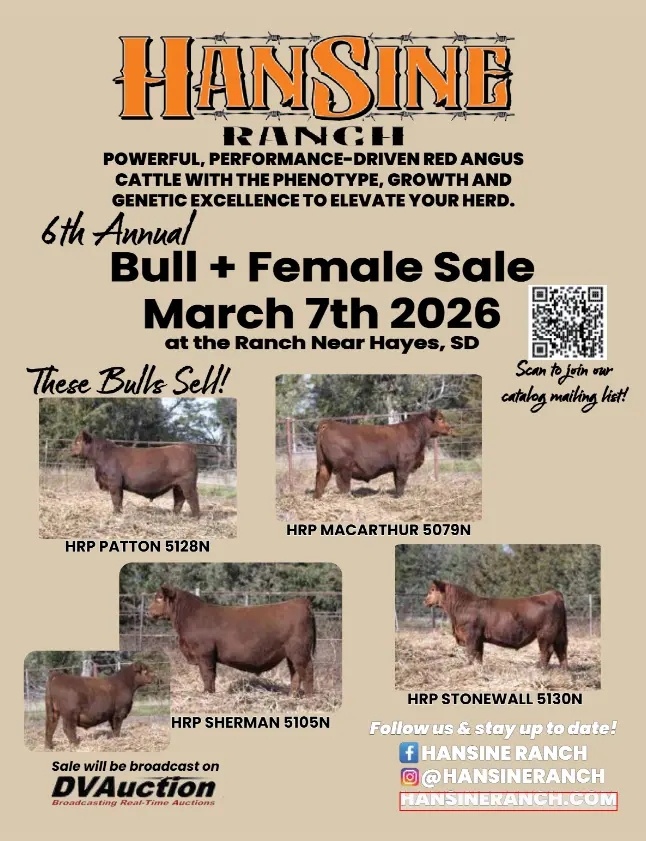 FOR MORE INFORMATION LOG ON TO THEIR WEBSITE, HANSINERANCH.COM OR THIER FACEBOOK PAGE, BID ON SALE DAY AT DVAUCTION.COM