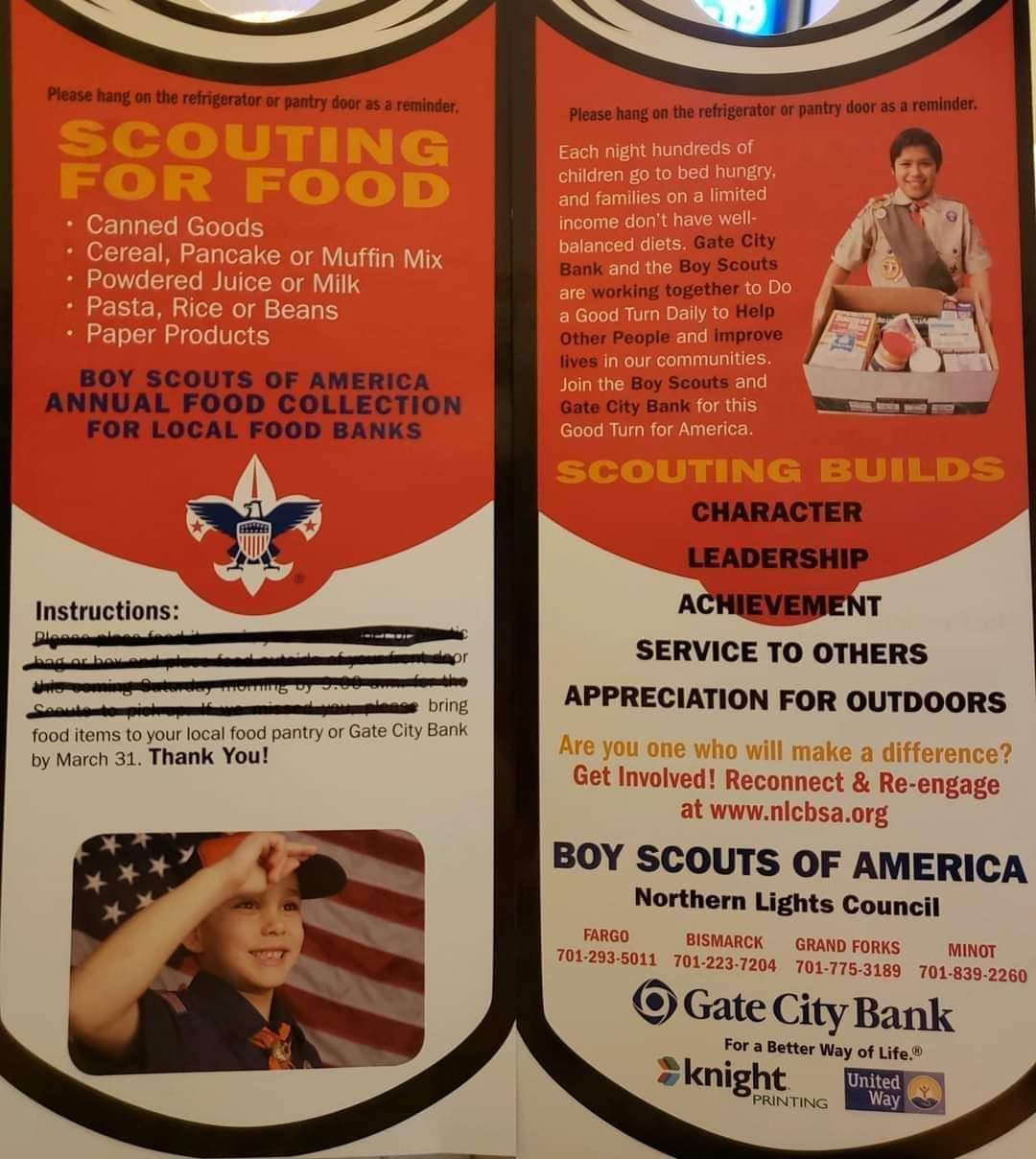 Troop 163 and Troop 5555 is Scouting for Food this week in Jamestown!