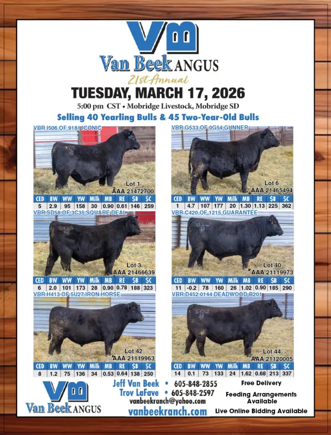 For more information, check out their website, Facebook, dvauction, or call Jeff Van Beek at 605-848-2855