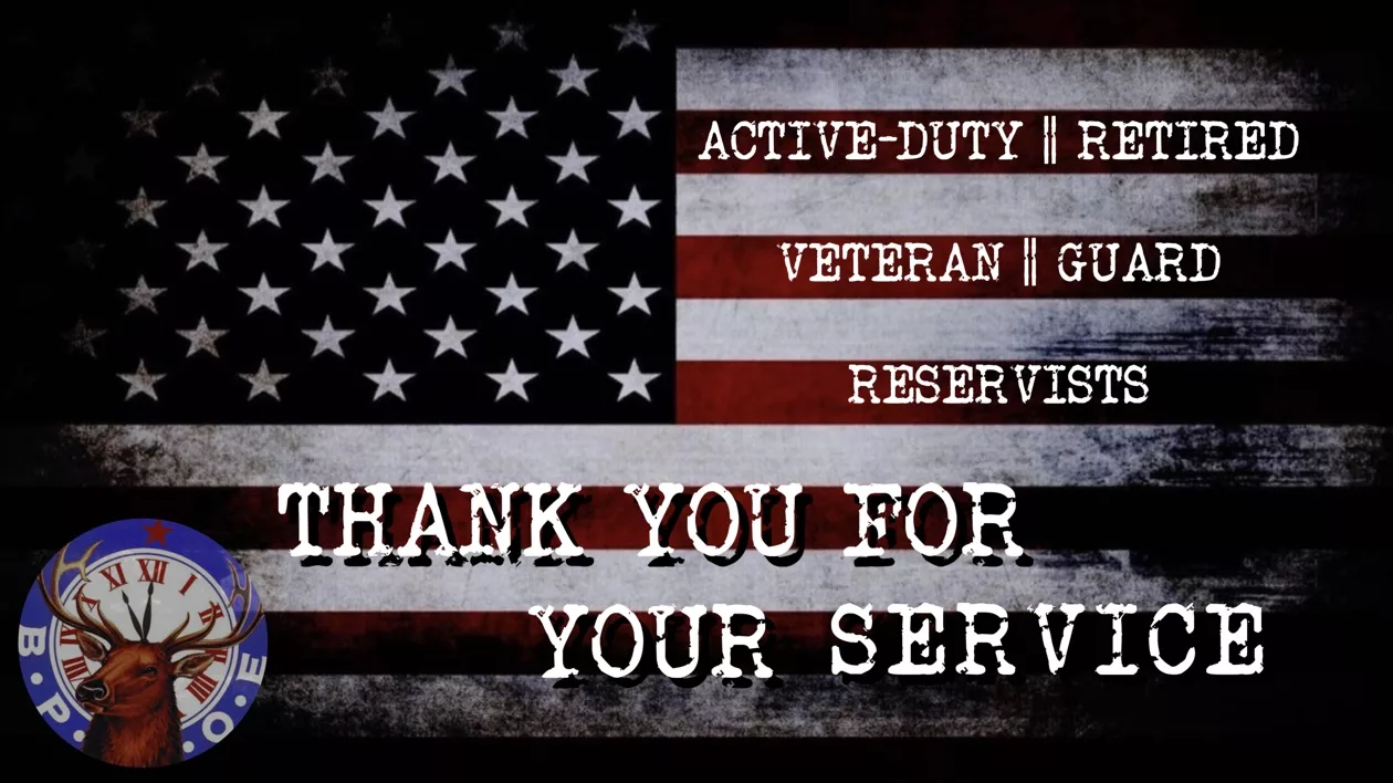 Calling all active duty, retired, veterans, guards, reservists, immediate family members and Elks members to join us to Salute our Veteran’s to our Appreciation Night at the Elks!!