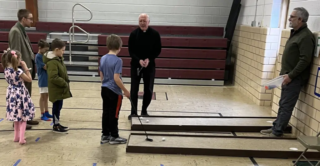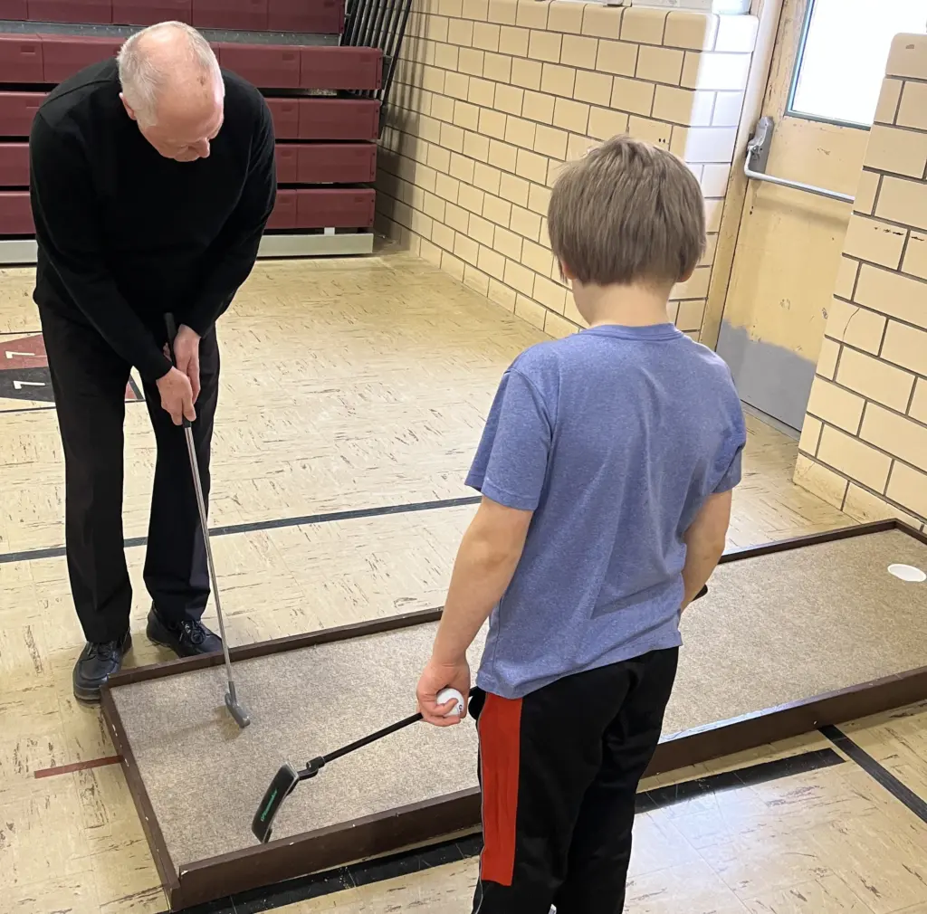 Showing off his putting skills.