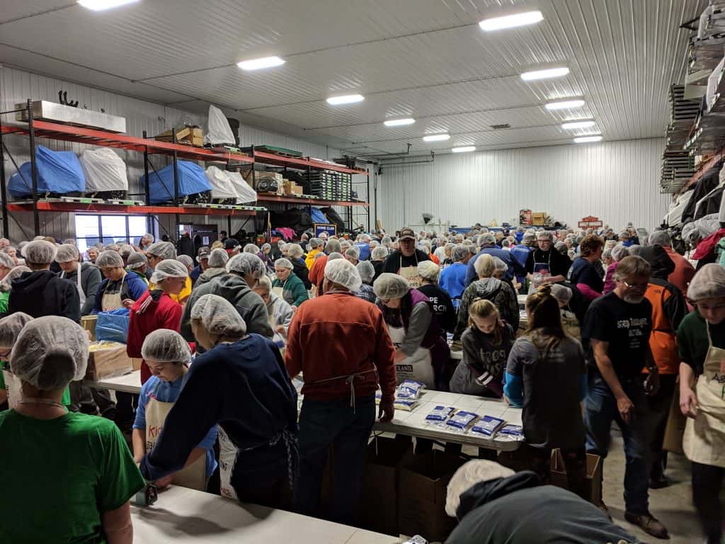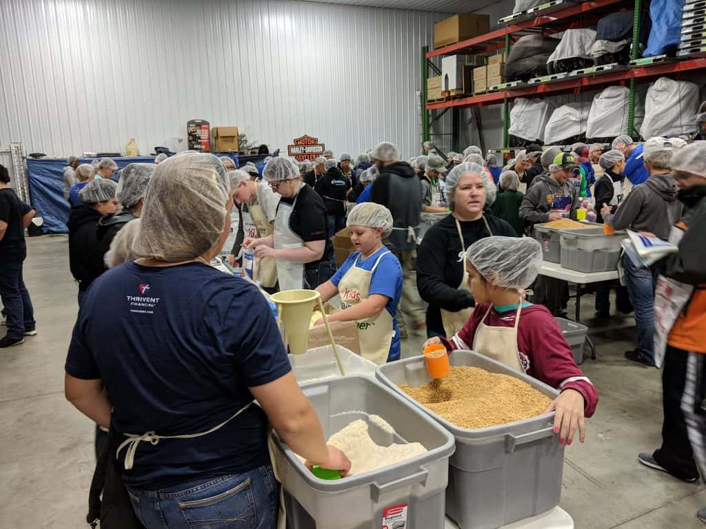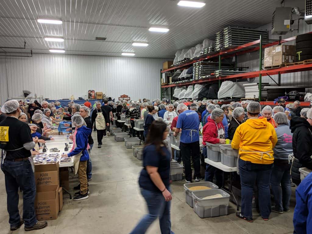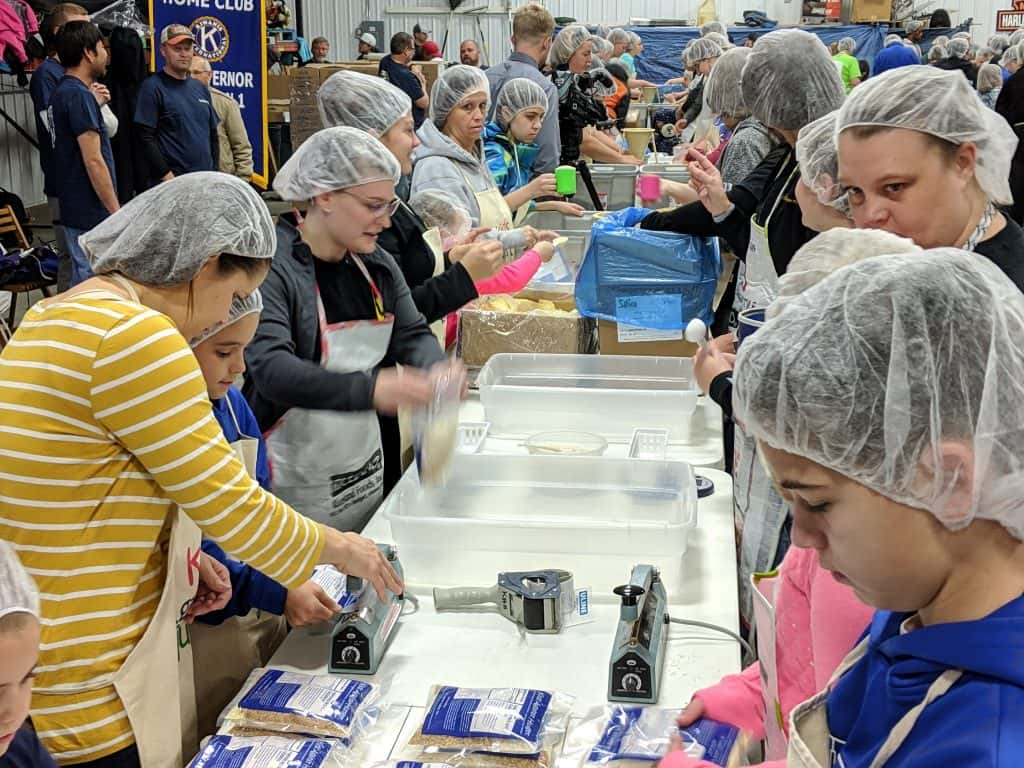 Volunteers like young Bryson Corell joined the event to help package meals. Corell and several others from the Country Kids 4-H group were glad to help out.