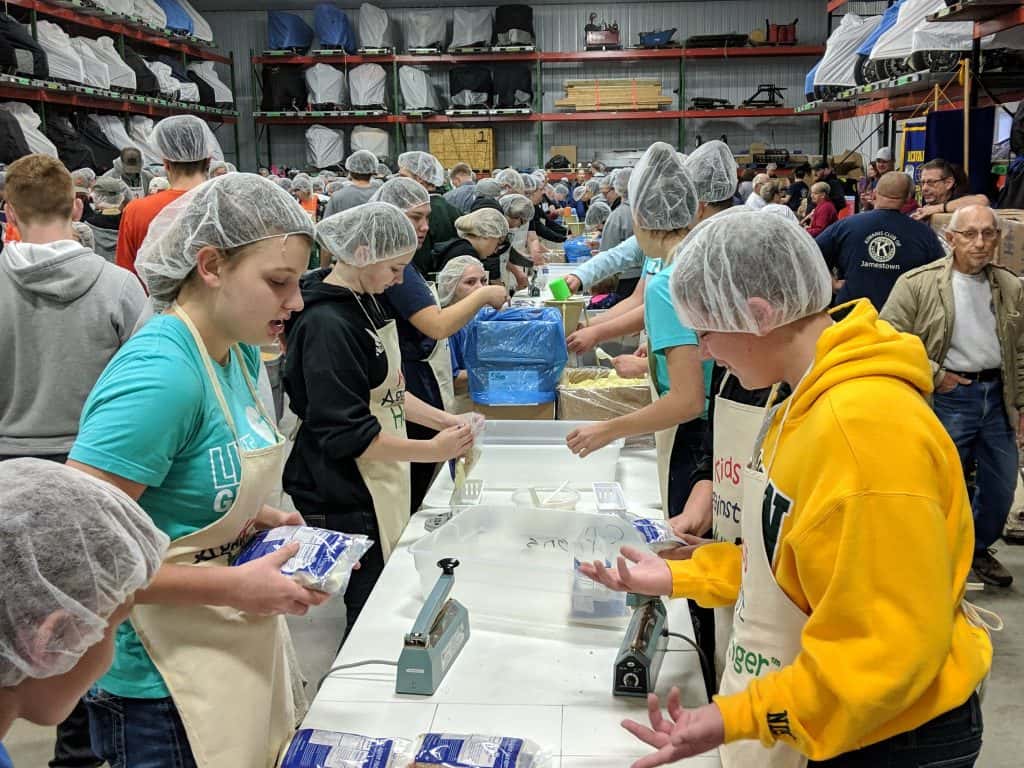 The Jamestown Kiwanis Club annual Kids Against Hunger food packaging event was held on Saturday, November 3rd. Club member Katie Ryan-Anderson estimated that nearly 375 volunteers donated their time creating meals that would then be donated to the Great Plains Food Bank and given to those who need them.