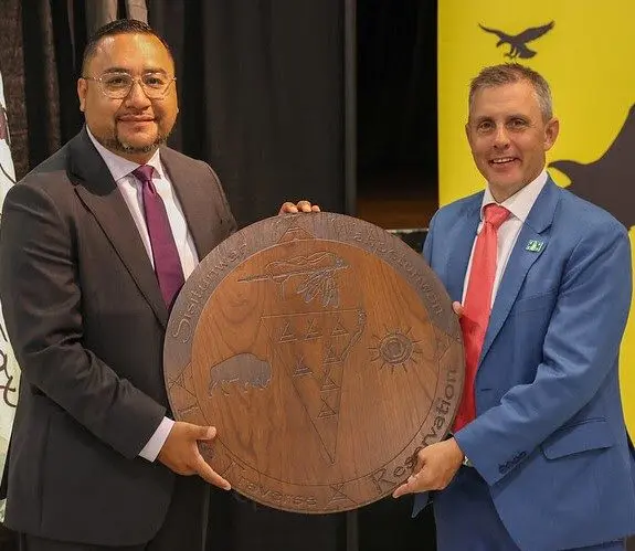 State Tribal Partnerships Posted By: Steve Urness August 21, 2025 @ 1:16 pm Gallery Tweet Share LinkedIn Email Governor Armstrong North Dakota Gov. Kelly Armstrong presents a gift to Sisseton-Wahpeton Oyate Chairman J. Garret Renville on Tuesday, Aug. 19, 2025, at the Dakota Magic Casino near Hankinson, N.D.