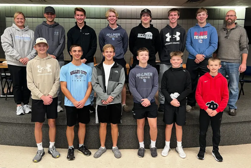 Top row l to r: Coach Susan Kringlie, Noah Tulp, Colin Hoff, Kellen Westman, Jon Koenig, Evan Schroeder, Matthew Holm, Coach Matt Nielson. Bottom row l to r: Quin Kruger, Cole Haugen, Connor Liebersbach, Emery Olson, Gray Kasowski, Andrew Hoff, not pictured is Coach Erik Kringlie.
